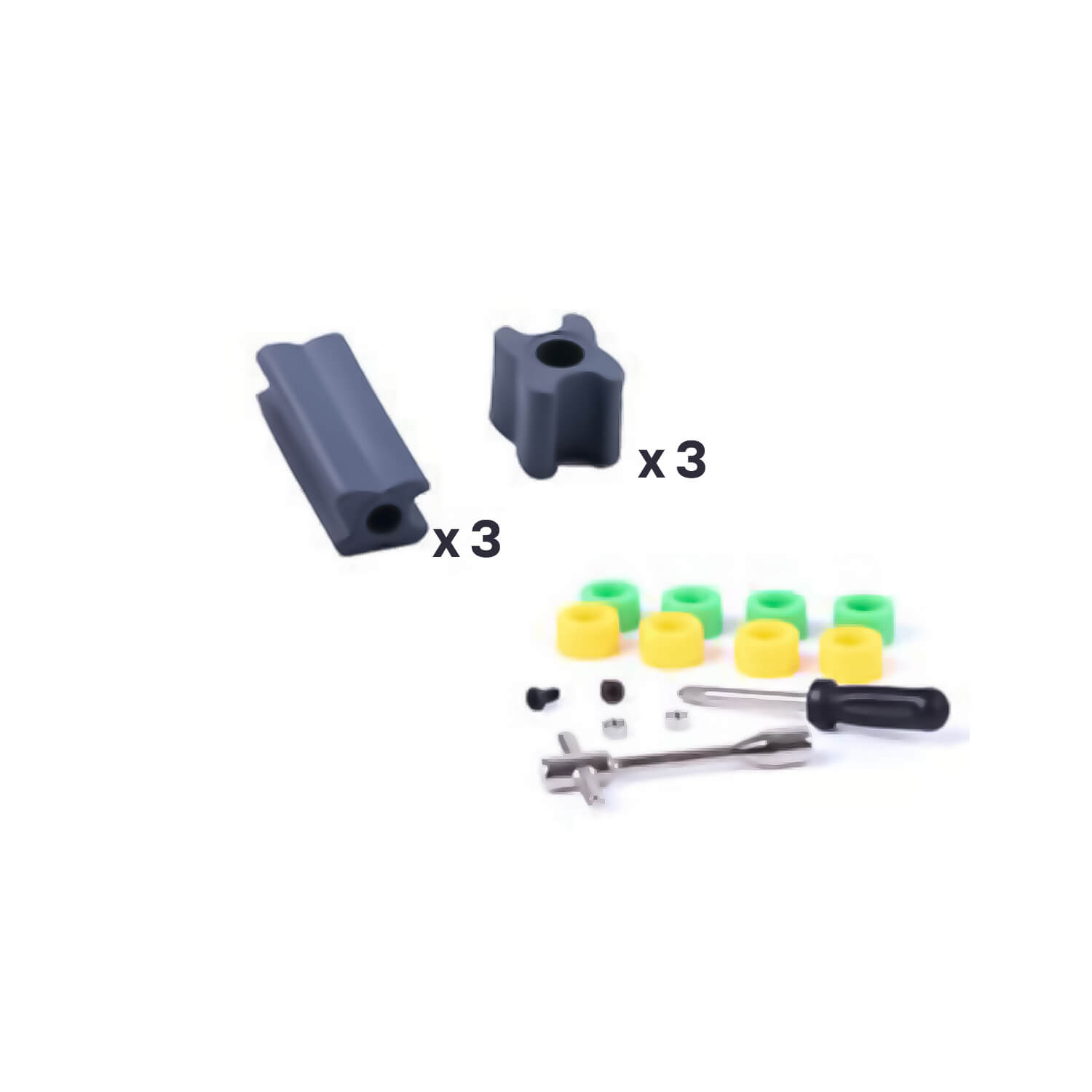 Одной из главных особенностей набора являются кнопки, которые можно соединить с платформой скейтборда и создать любые конструкции, необходимые для выполнения трюков по вашему желанию.
