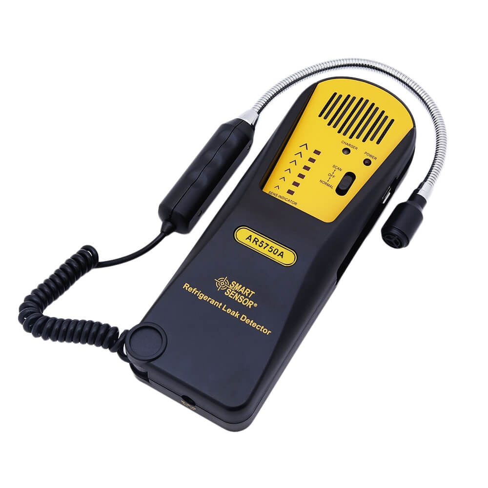 Портативный прибор для обнаружения утечки хладагента. Преимущественно используется в мастерских по ремонту холодильников. Выносной датчик позволяет быстро локализовать место утечки опасных веществ. В случае превышения установленной нормы срабатывает звуковая и световая сигнализации. Время отклика на утечку составляет менее 1 секунды. Для хранения и переноски прибора предусмотрен пластиковый кейс.