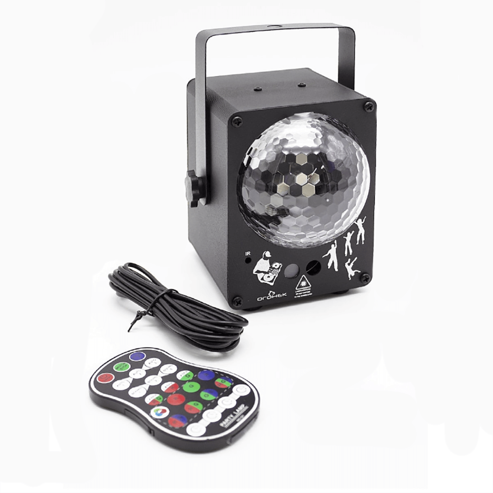 Лазерный проектор - дискошар музыкальный Party Light Box с пультом (RGB laser, LED, 120°)