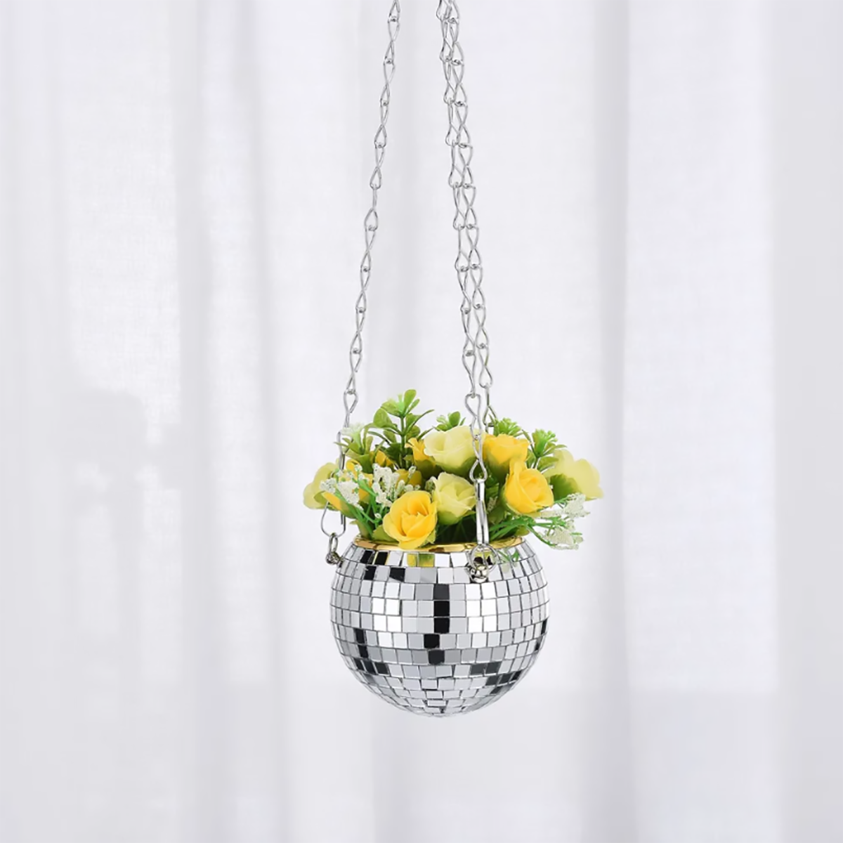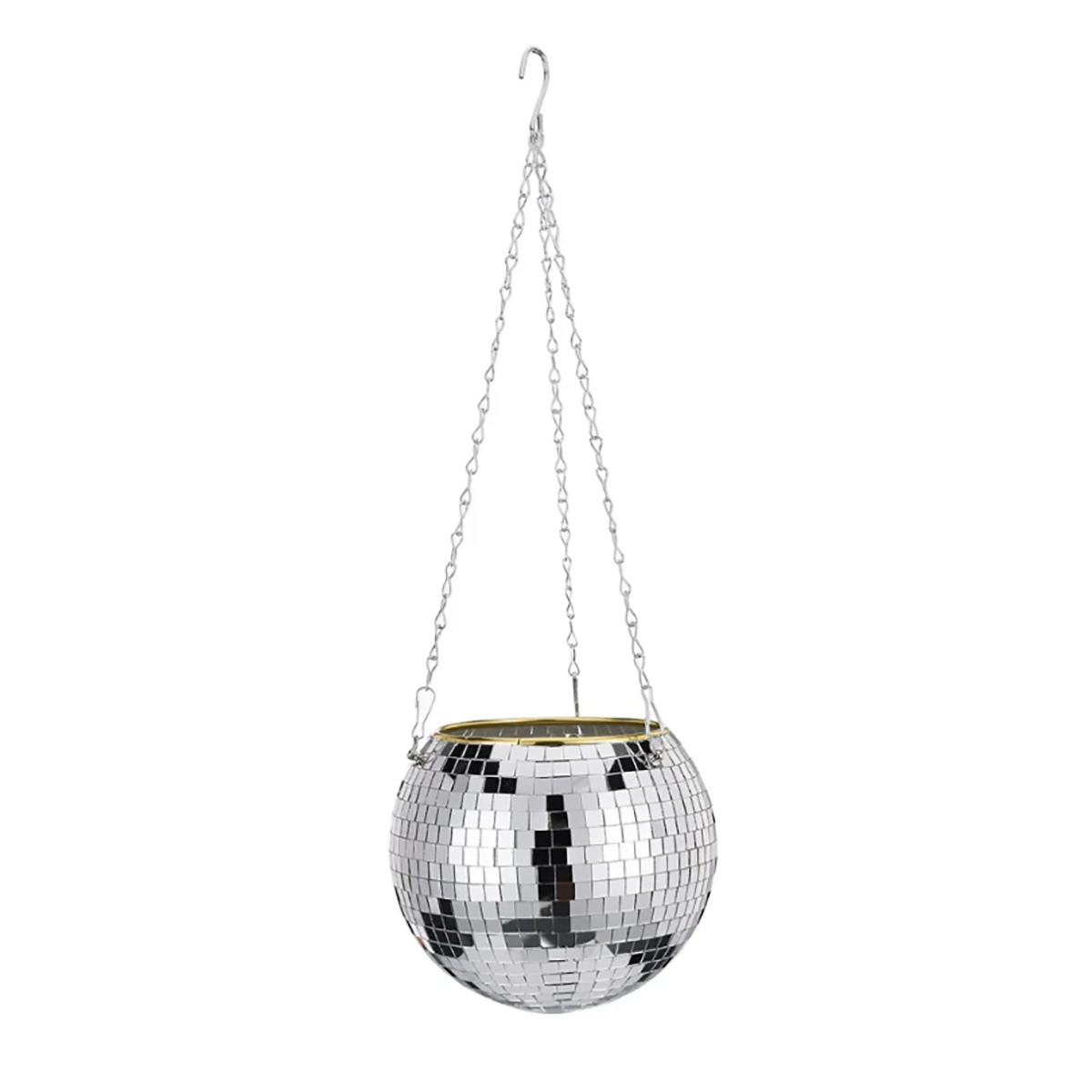 Особенности этого кашпо включают его подвесное расположение и зеркальную поверхность, которая создает удивительный эффект света и пространства в любом помещении.