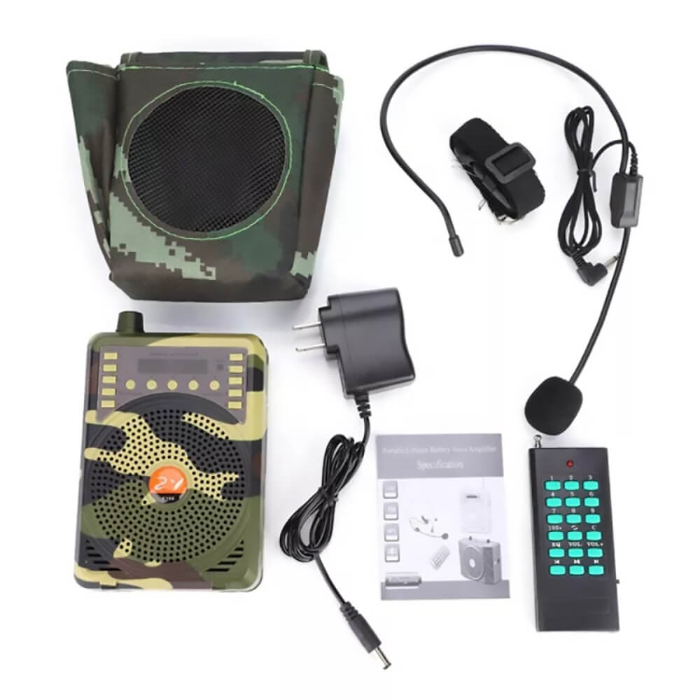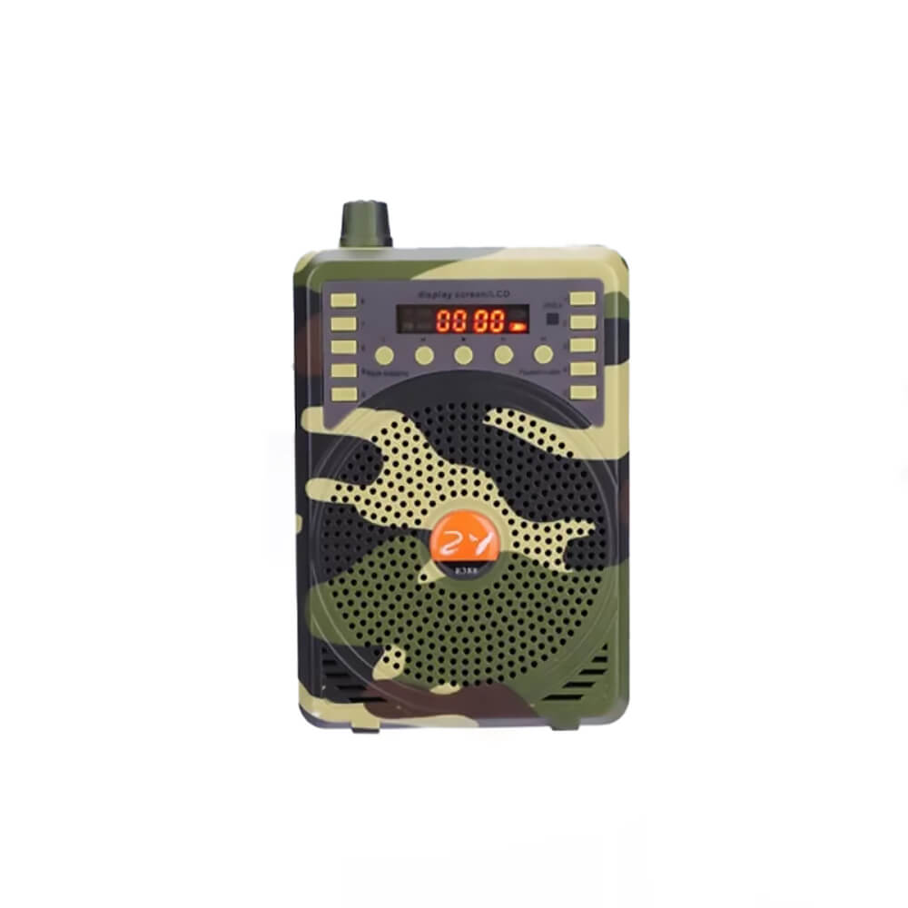 Электронный манок Hunter Sound E-38 используется для приманивания птиц к месту охоты. Электроманок для охоты имитирует звуки настоящих птиц, на которые реагируют гуси, утки и другие представители. Манок для охоты на гуся, утку изготовлен в пластиковом корпусе в цвете хаки, оснащен крупным динамиком и цифровым дисплеем, на который выводится номер записанного сообщения. Устройство управляется с пульта ДУ в радиусе 400 метров, через который выбирается оптимальная запись, регулируется громкость. Устройство работает от встроенного аккумулятора на протяжении 8 часов. Среднее время зарядки не превышает 4 часа.